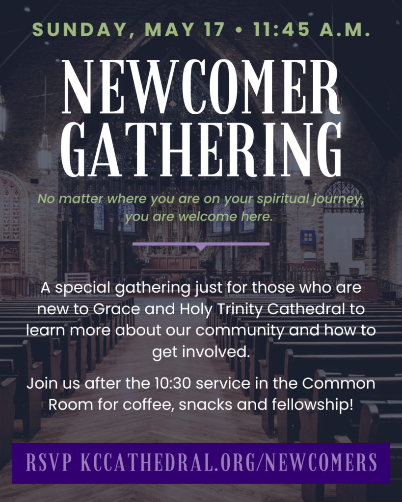 A special gathering just for those who are new to Grace and Holy Trinity Cathedral to learn more about our community and how to get involved. Join us after the 10:30 service in the Common Room for coffee, snacks and fellowship! The nursery will be open during the gathering.