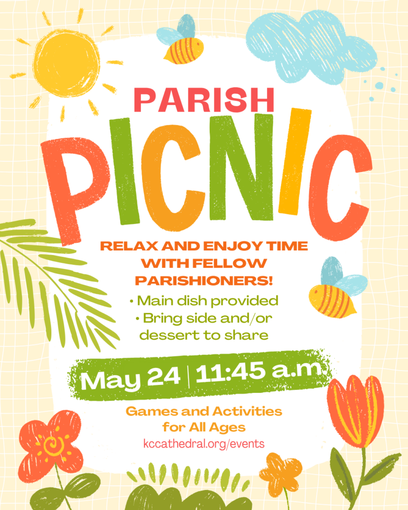 Join us for our annual Parish Picnic. The Cathedral serves up the main feast, and you’re invited to dazzle us with your finest sides and sweetest desserts. We’ll have fun activities for kids of all ages. Dress casually and enjoy this time of fun and fellowship!
